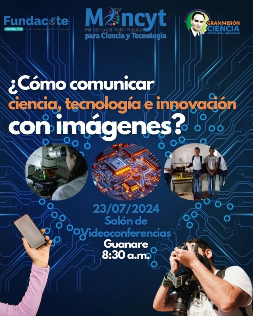 El martes 23 de julio, la Fundación para el Desarrollo de la Ciencia y la Tecnología (Fundacite) en el estado Portuguesa, realizará una videoconferencia titulada “¿Cómo comunicar ciencia, tecnología e innovación con imágenes?”.